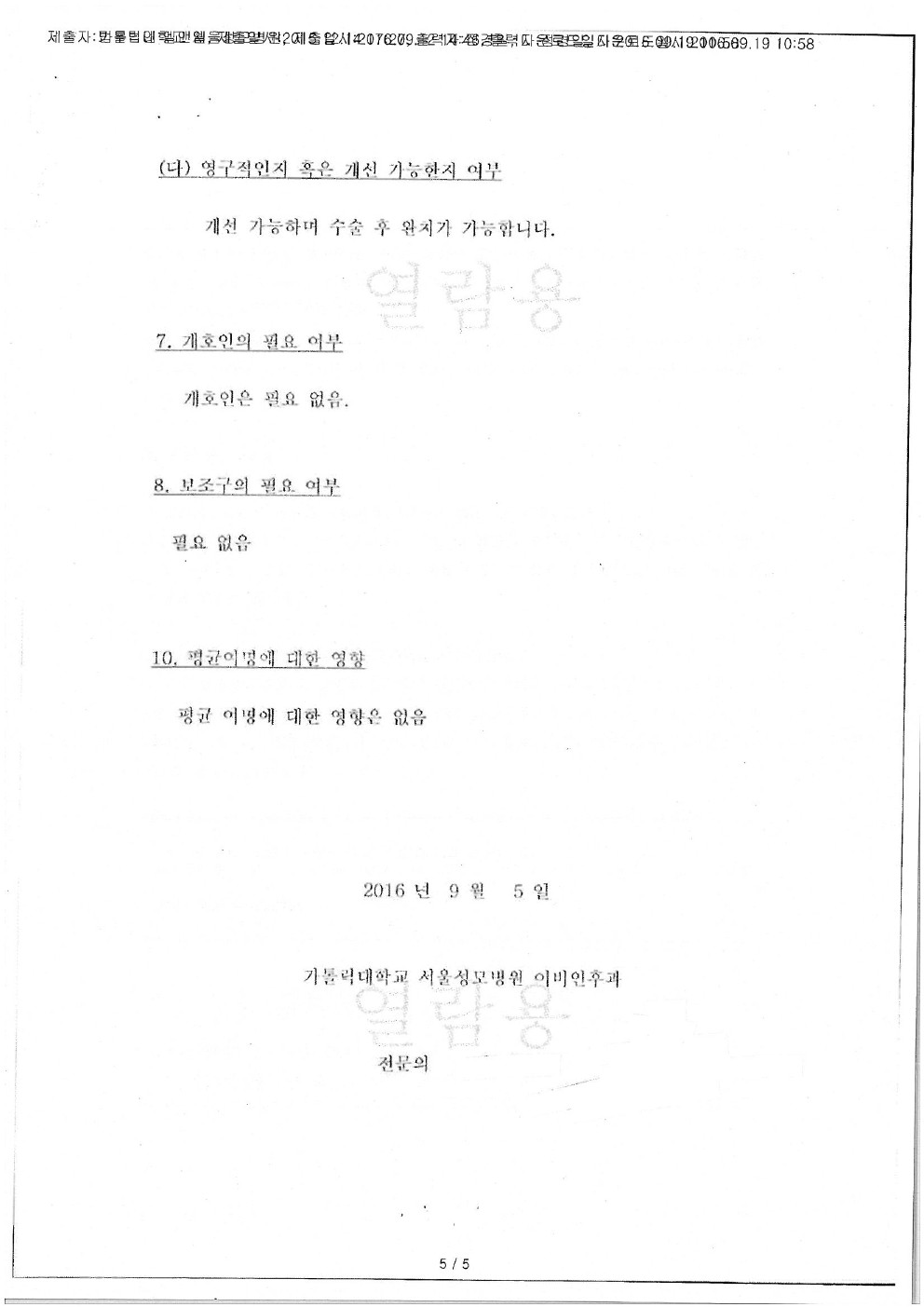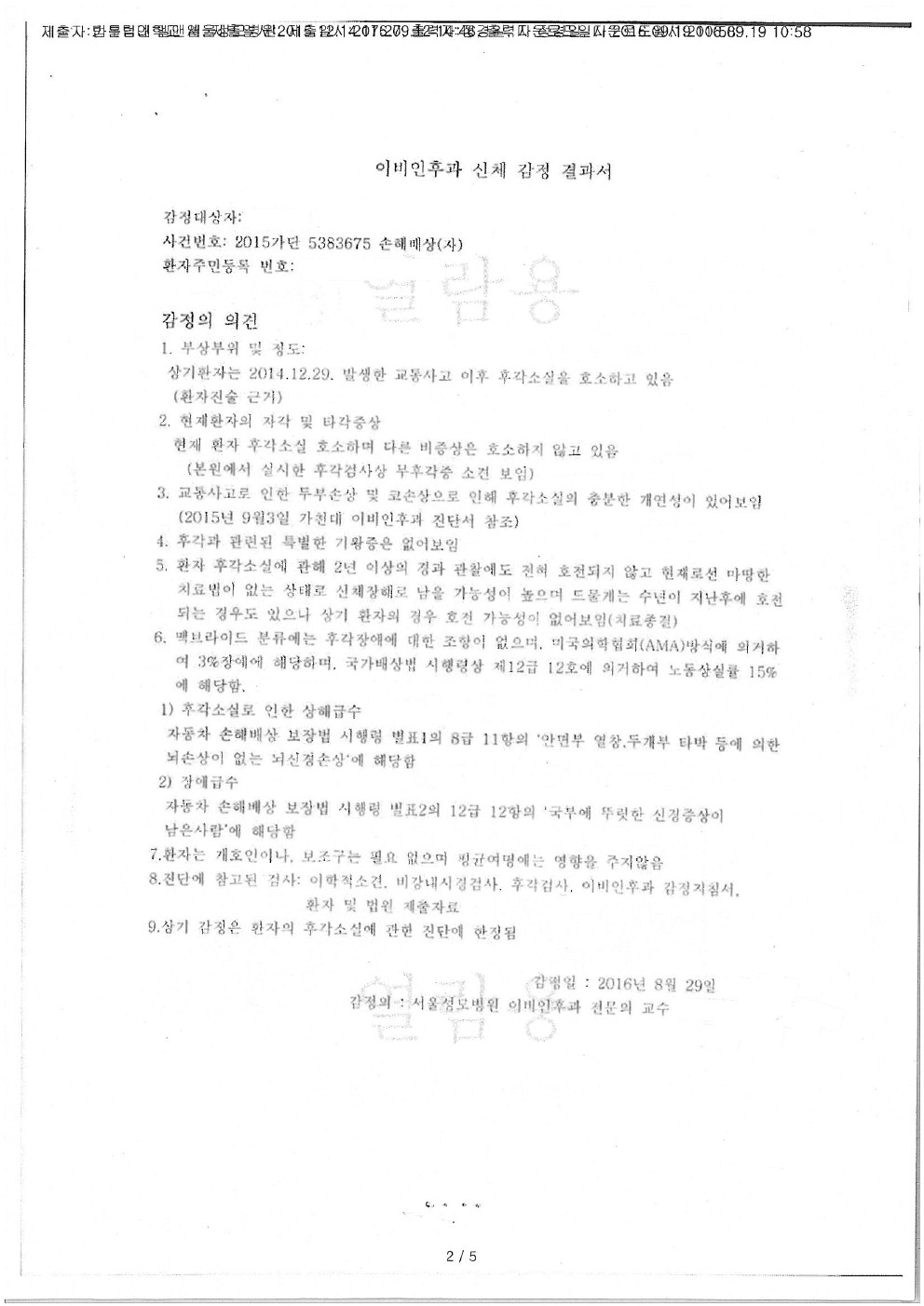 카톨릭대학교 서울성모병원 [후유장해-뇌손상으로 인한 후각소실]