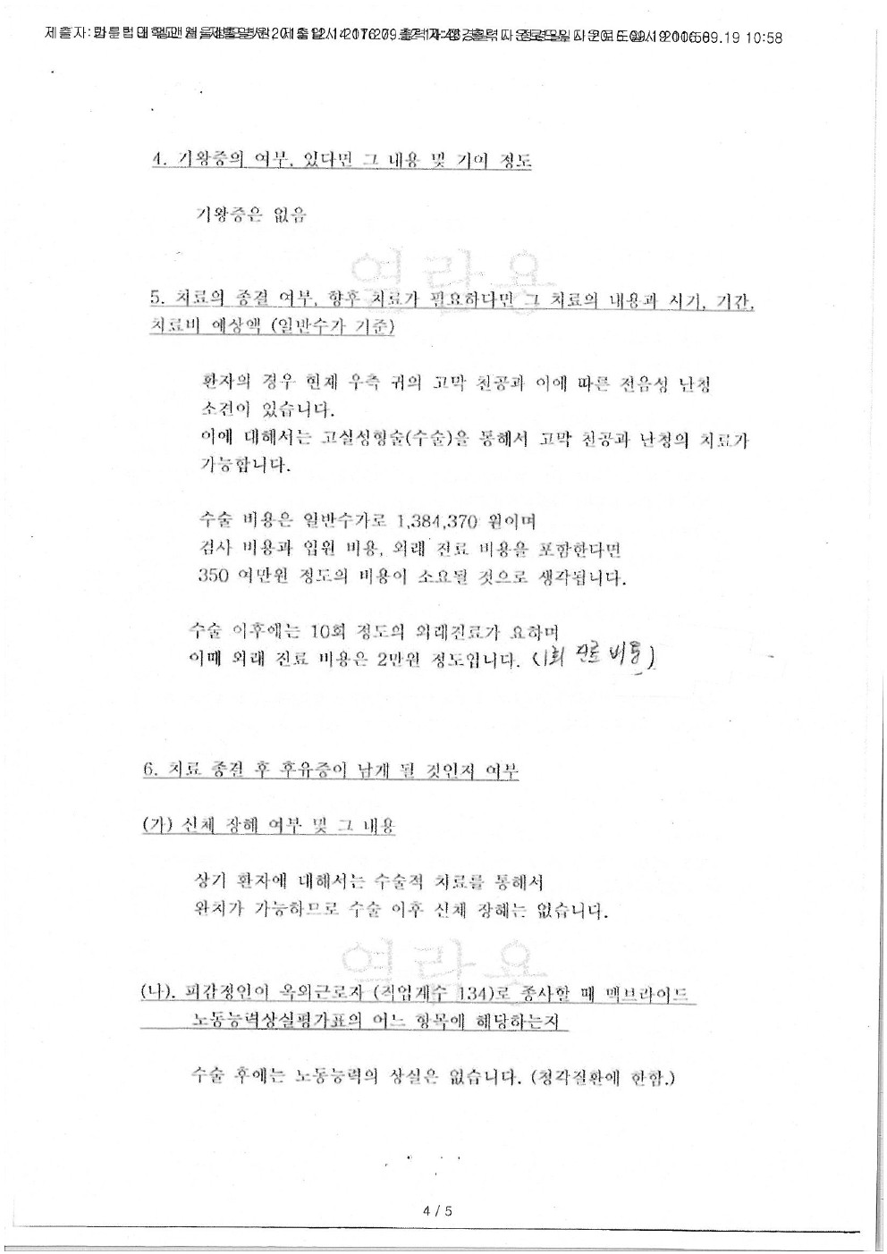 카톨릭대 서울성모병원 [후유장해-뇌손상으로 인한 후각소실 및 난청]