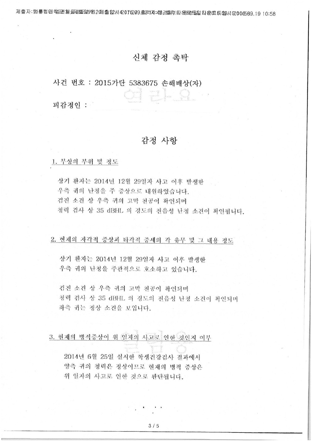 분당 서울대병원 [후유장해-좌측 청각상실, 안면 신경마비]