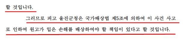 이 사건 도로의 설치·관리를 맡은 자인 피고 울진군청에서는 이 사건 도로에 방호 울타리를 설치하여야 할 안전 관리 의무가 있고, 안전펜스, 방호 울타리를 설치하여야 함에도 이를 설치하지 아니하였으므로 안전 관리 의무를 위반한 영조물의 설치·관리상의 하자에 대한 손해배상 청구 사건입니다.