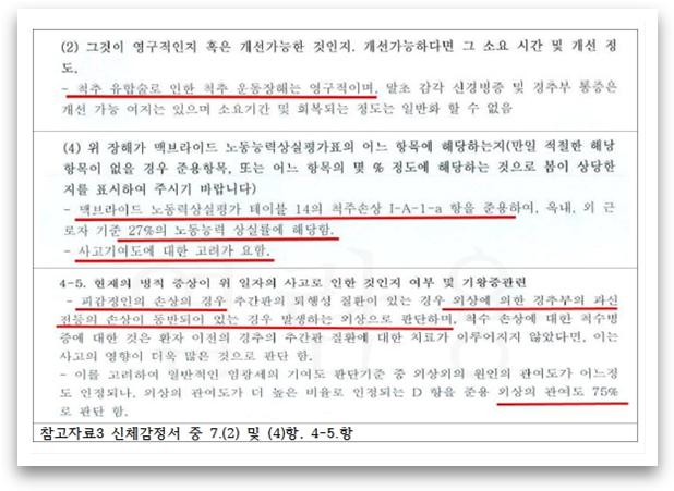 가해차량인 택시 운전자가 편도 2차로 도로의 1차로를 진행하다가 사고 지점에 이르러 우회전을 하던 중 2차로로 주행 중이던 원고 오토바이가 피고 차량을 보고 빗길에 넘어지면서 발생한 비접촉 사고로 경추간판장해로 골유합술을 시행 받고 신체감정과 감정 결과에 대한 사실조회 과정을 거쳐 최종 사고 기여도 75% 장해율 18% 영구장해로 이끈 사례입니다.