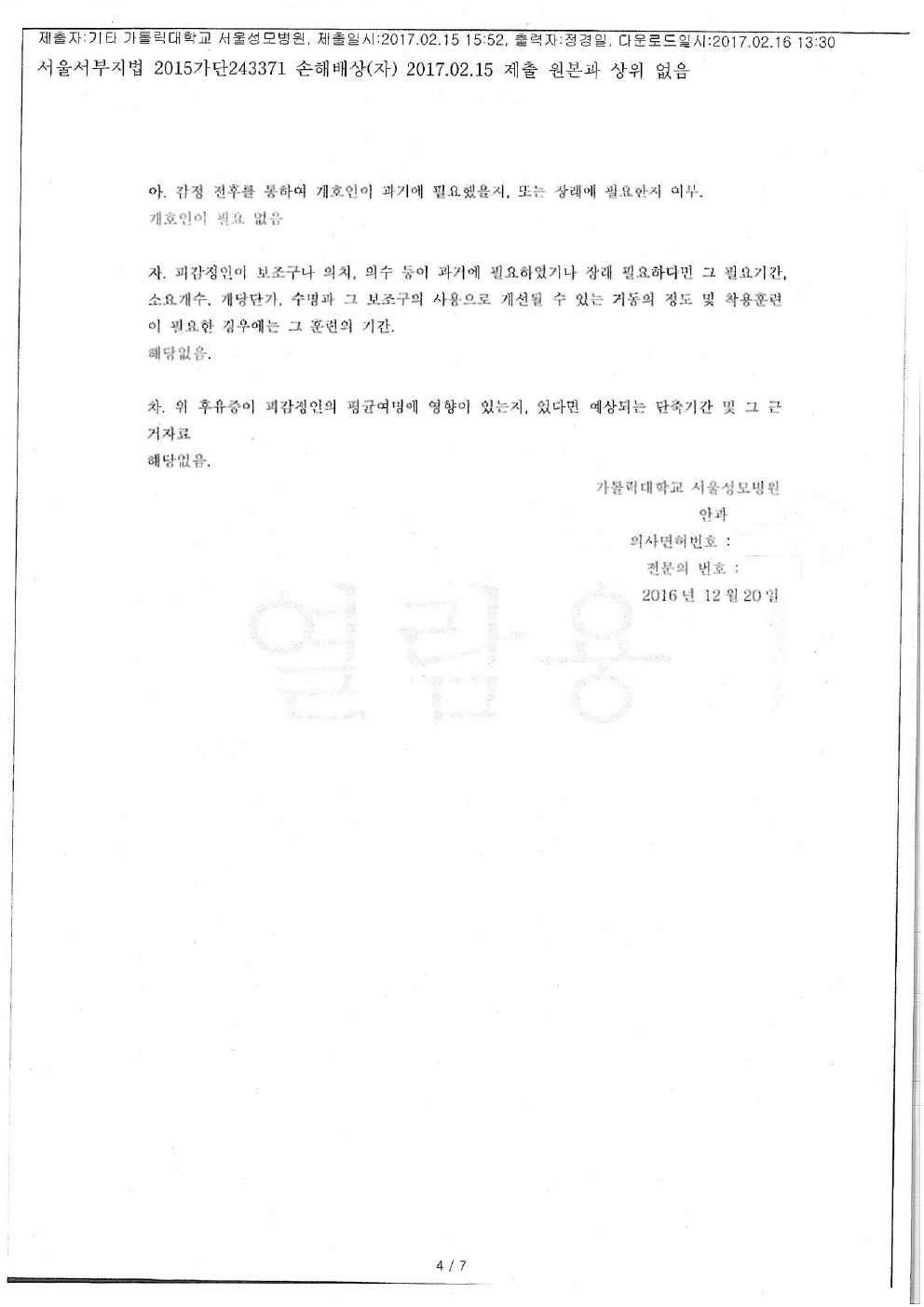 카톨릭대 서울성모병원[후유장해-하방주시시 복시]