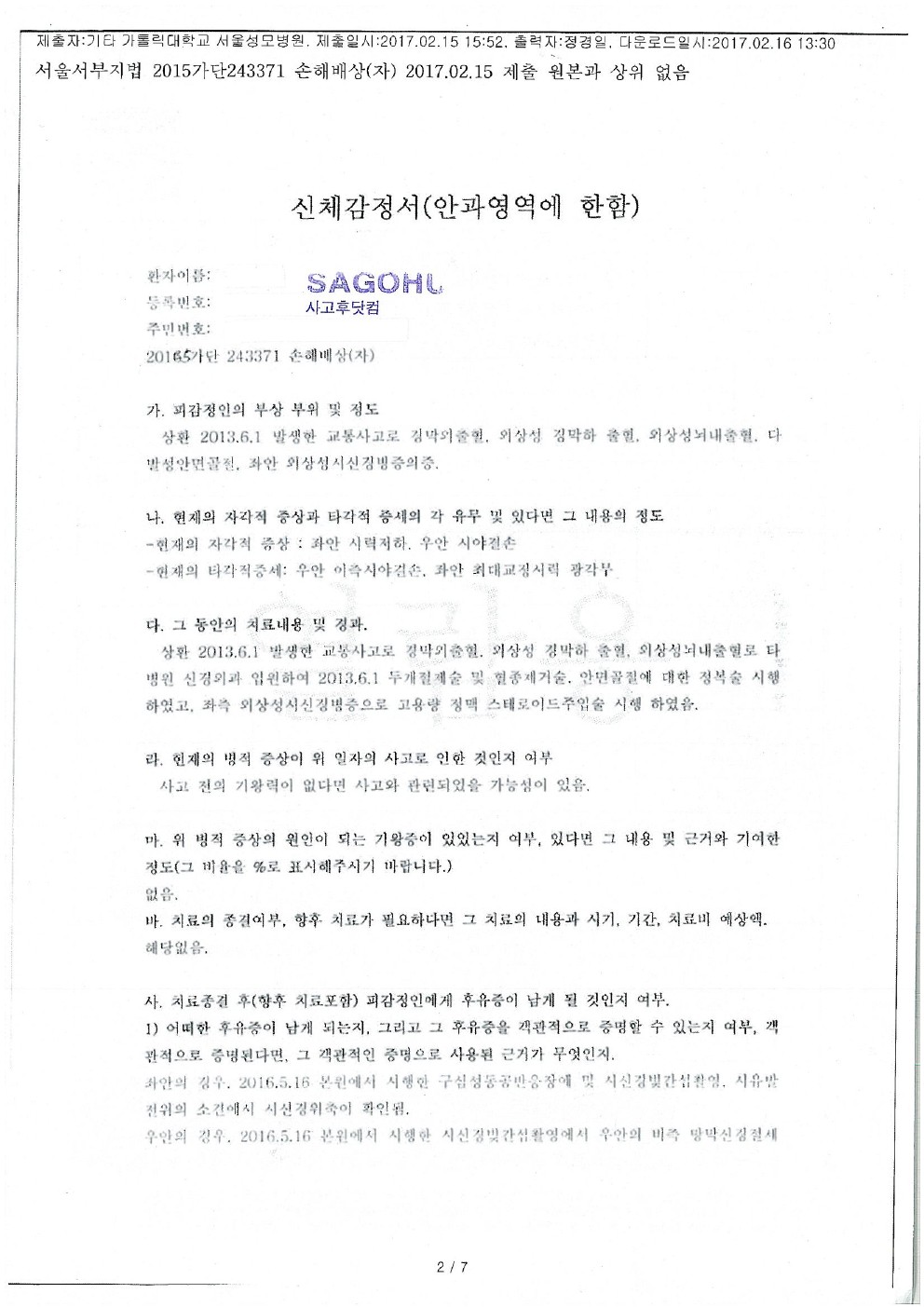 카톨릭대 서울성모병원[후유장해-시각장해]