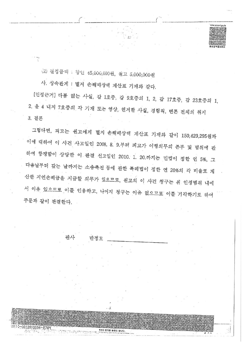 2010년 03월 11일 [ 서울중앙지방법원 1심 판결문 ]