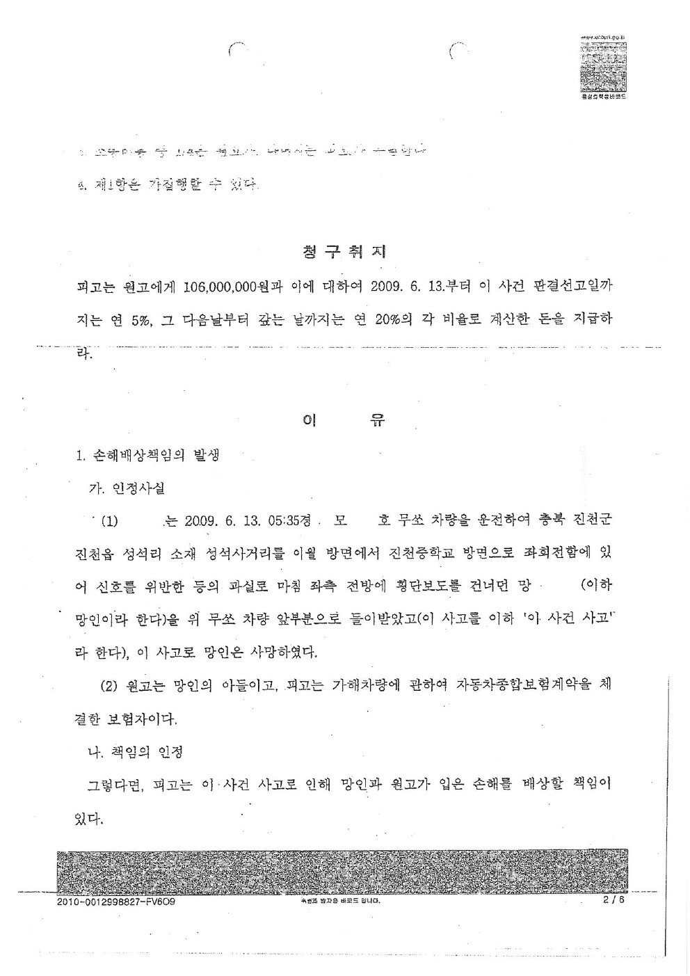 2010년 01월 29일 [ 서울남부지방법원 1심 판결문 ]