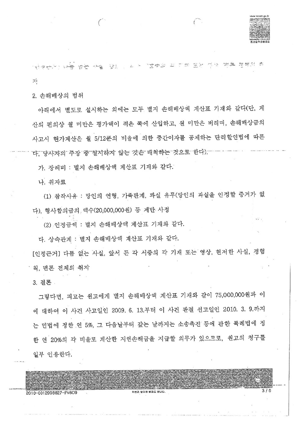2010년 05월 06일 [ 서울중앙지방법원 1심 화해권고결정문 ]