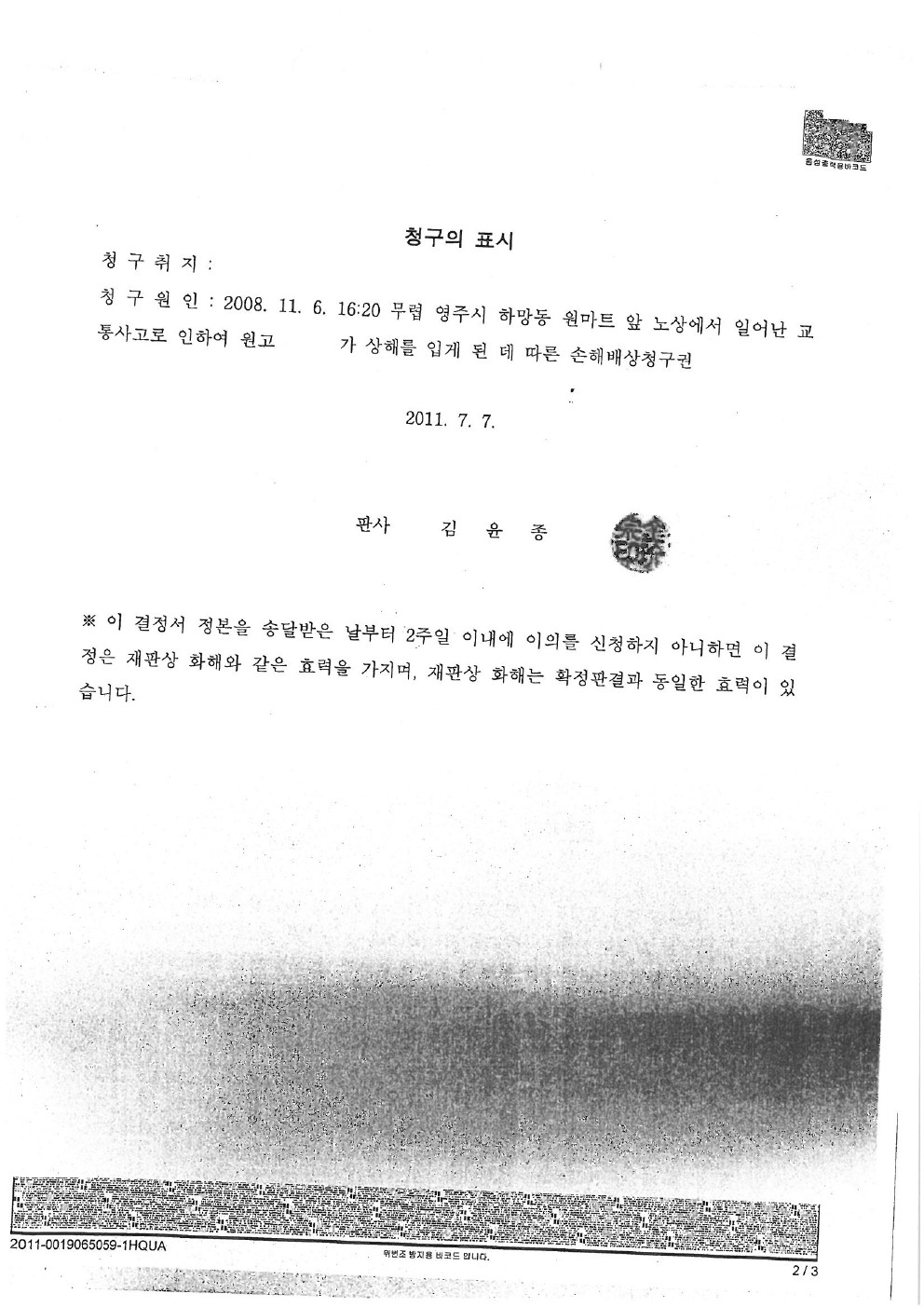 2011년 07월 08일 [ 서울중앙지방법원 1심 화해권고결정문 ]