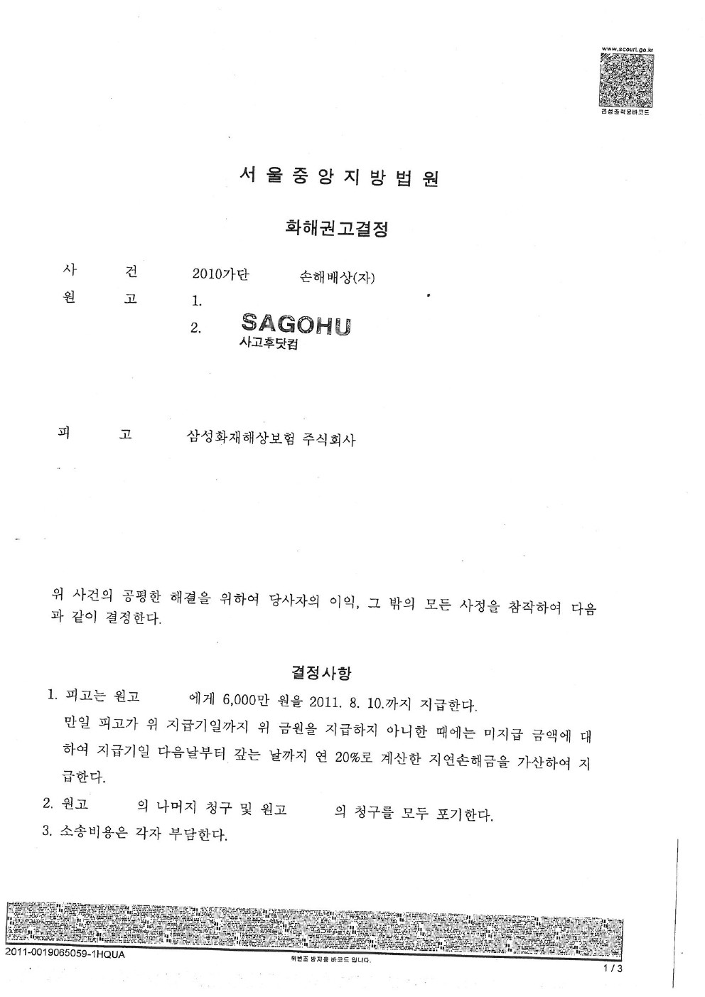 2011년 05월 18일 [ 서울중앙지방법원 1심 화해권고결정문 ]