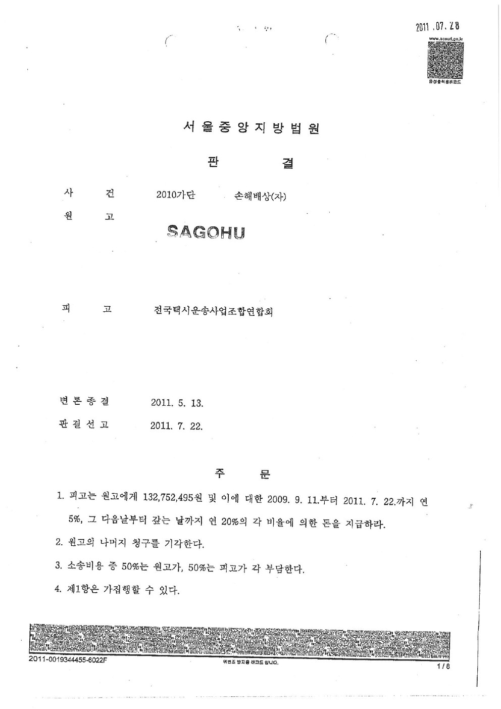 2011년 01월 17일 [ 서울중앙지방법원 1심 판결문 ]