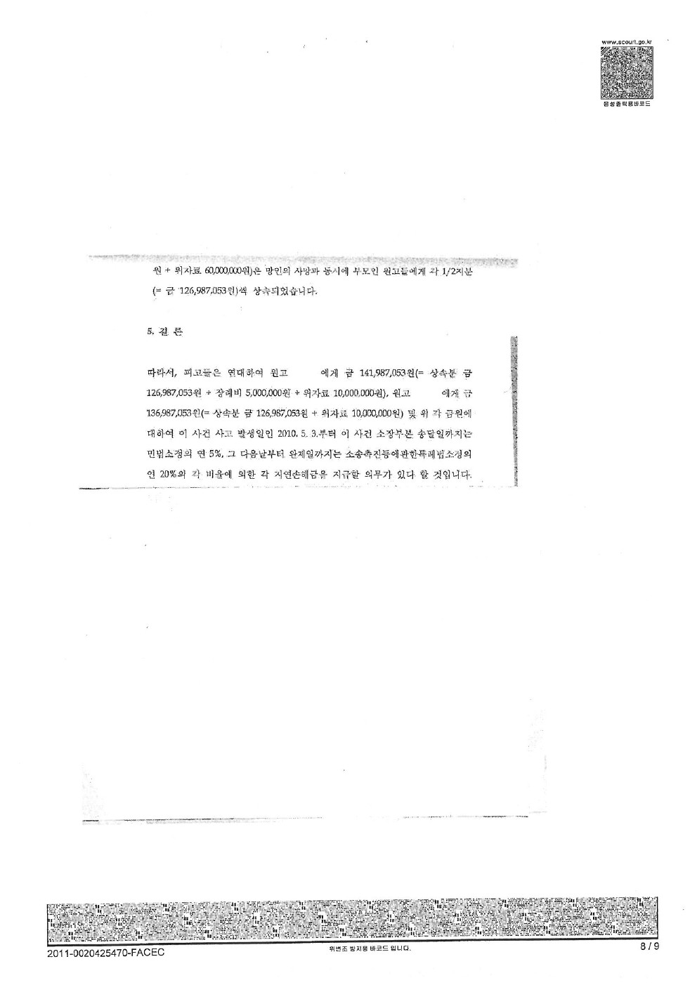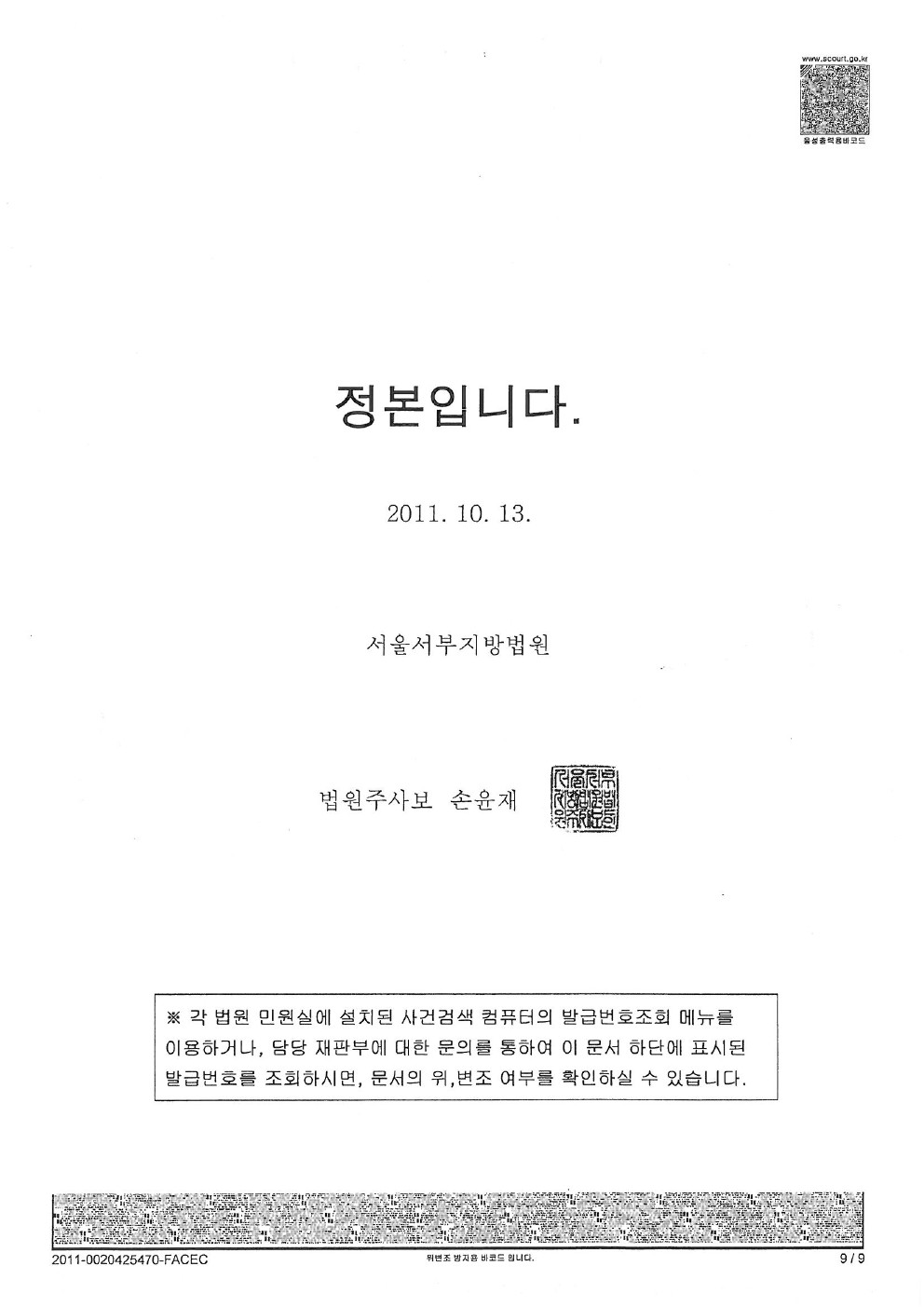2011년 10월 13일 [ 서울중앙지방법원 1심 판결문 ]