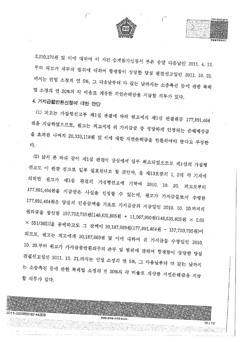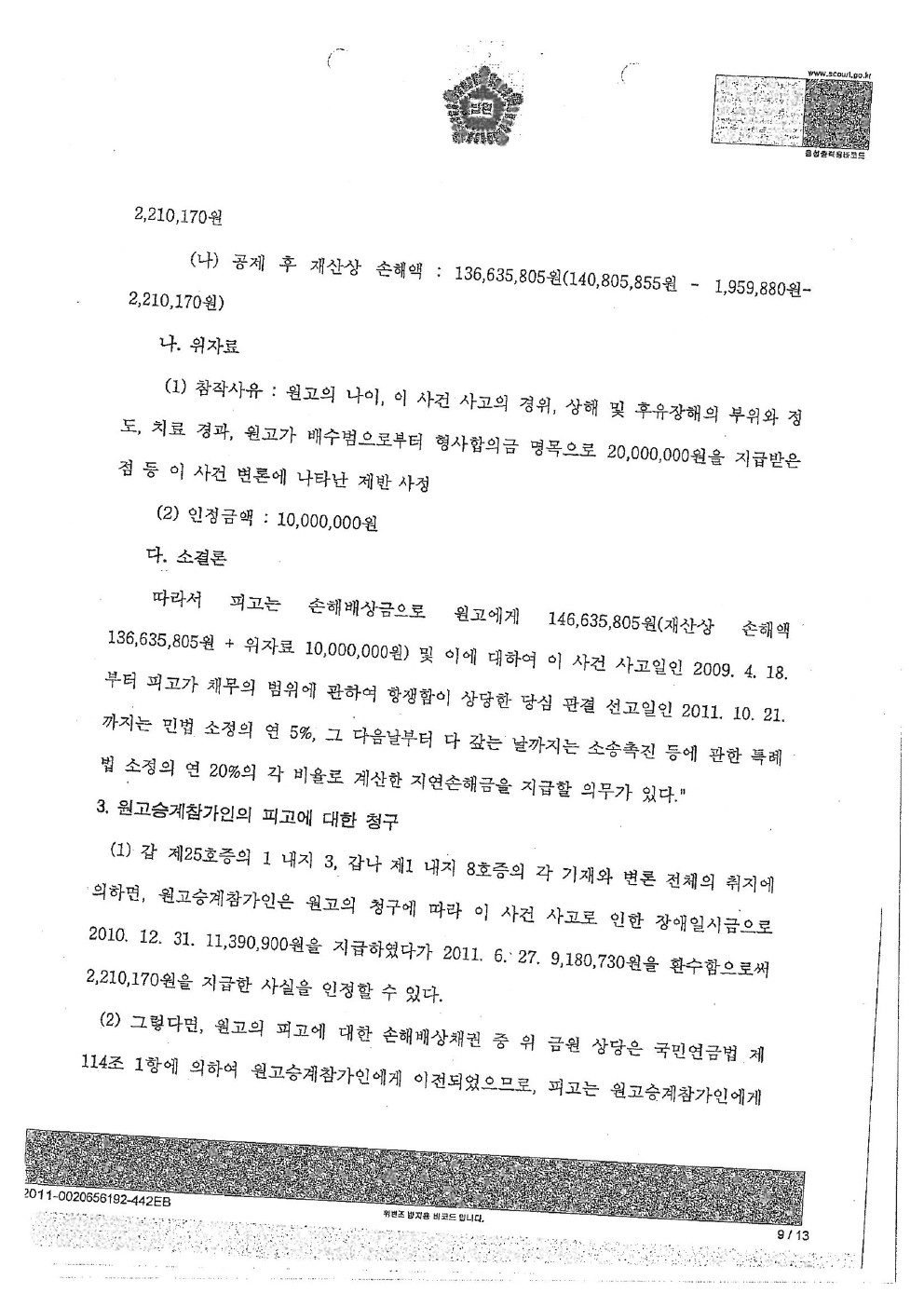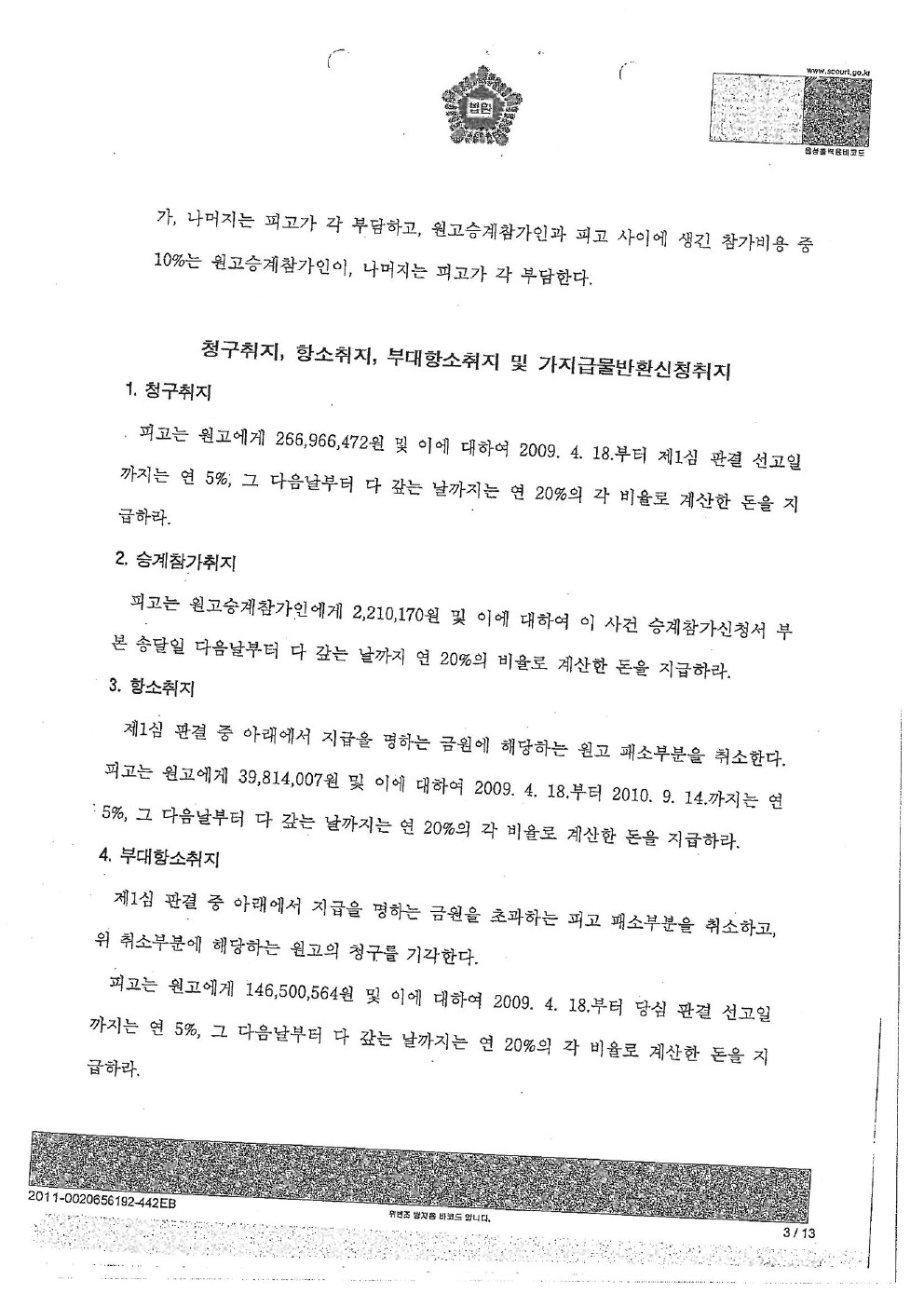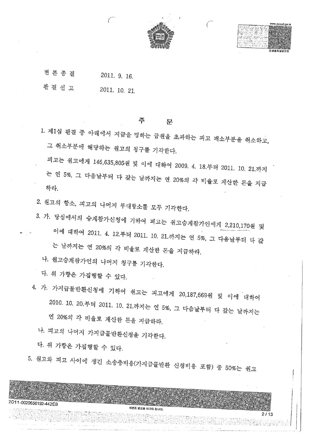 26 2011년 11월 17일 [ 서울중앙지방법원 2심 판결문 ] file 사고후닷컴 2012.06.05 15855