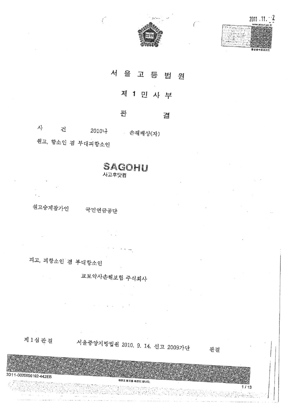 17 2011년 10월 06일 [ 서울중앙지방법원 1심 판결문 ] file 사고후닷컴 2012.06.04 16241