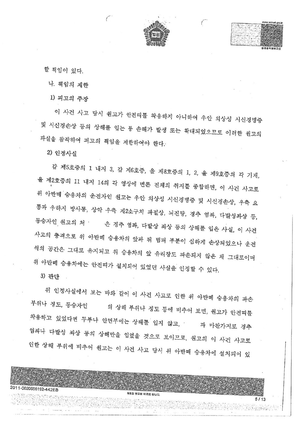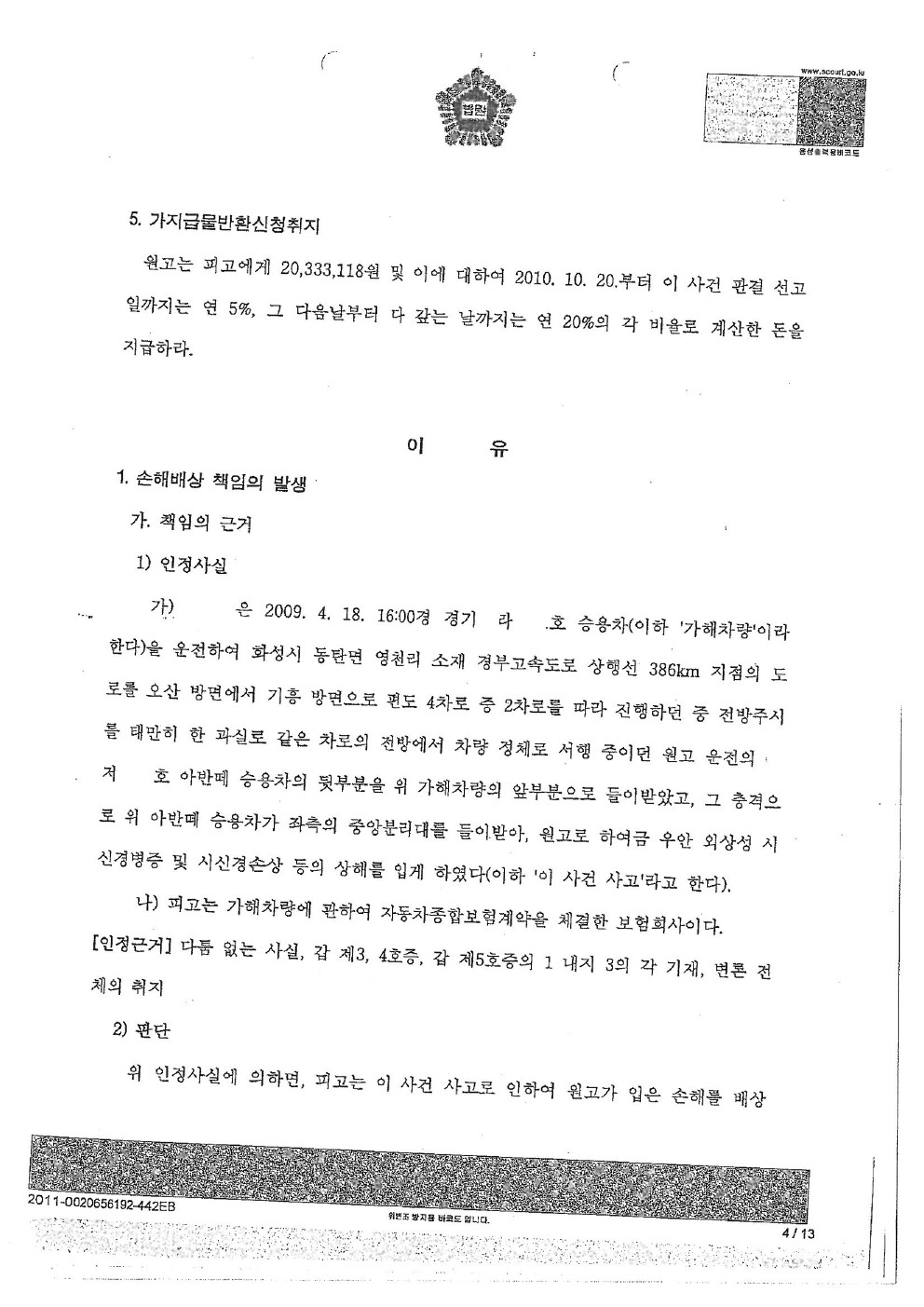 15 2011년 07월 25일 [ 서울중앙지방법원 1심 판결문 ] file 사고후닷컴 2012.06.04 16592