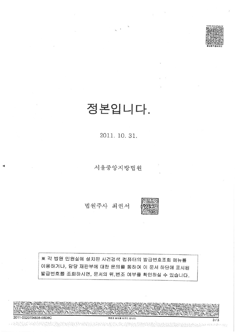 17 2011년 10월 06일 [ 서울중앙지방법원 1심 판결문 ] file 사고후닷컴 2012.06.04 16241