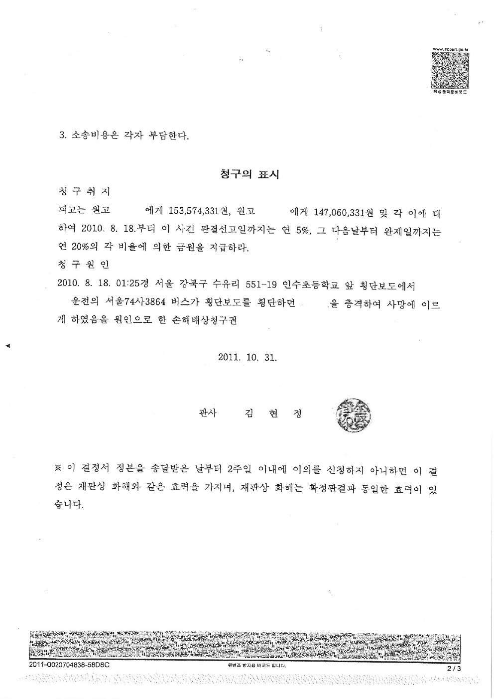 12 2011년 07월 05일 [ 서울고등법원 2심 조정을 갈음하는 결정문 ] file 사고후닷컴 2012.06.04 20370