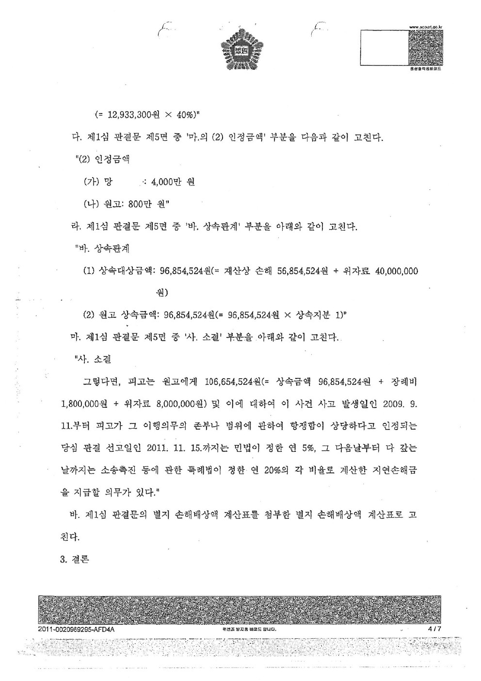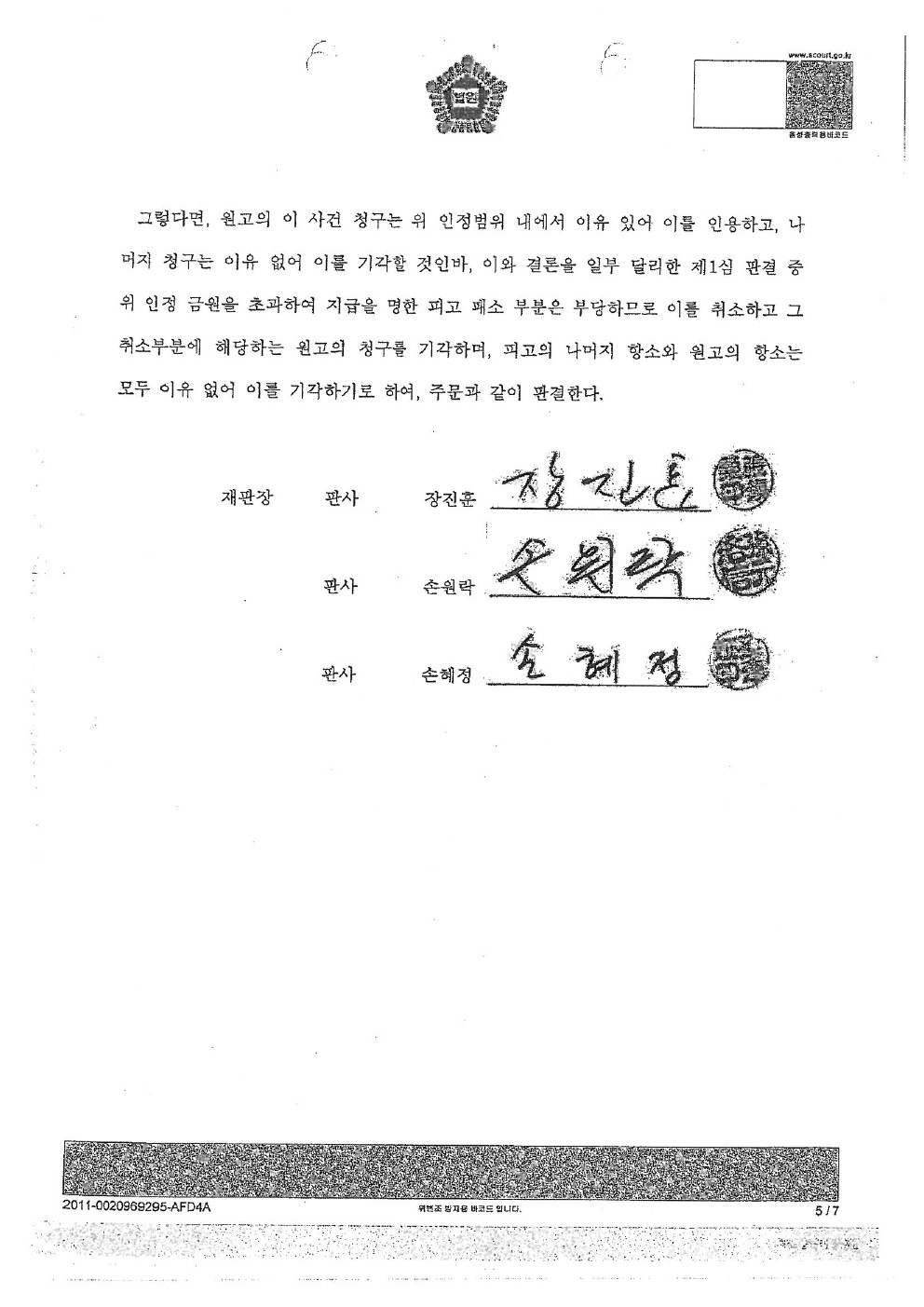 2011년 10월 27일 [ 서울고등법원 2심 판결문 ]