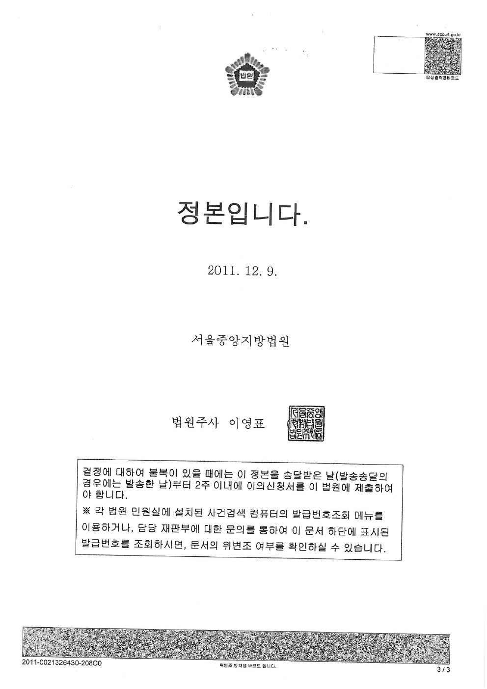 26 2011년 11월 17일 [ 서울중앙지방법원 2심 판결문 ] file 사고후닷컴 2012.06.05 15855