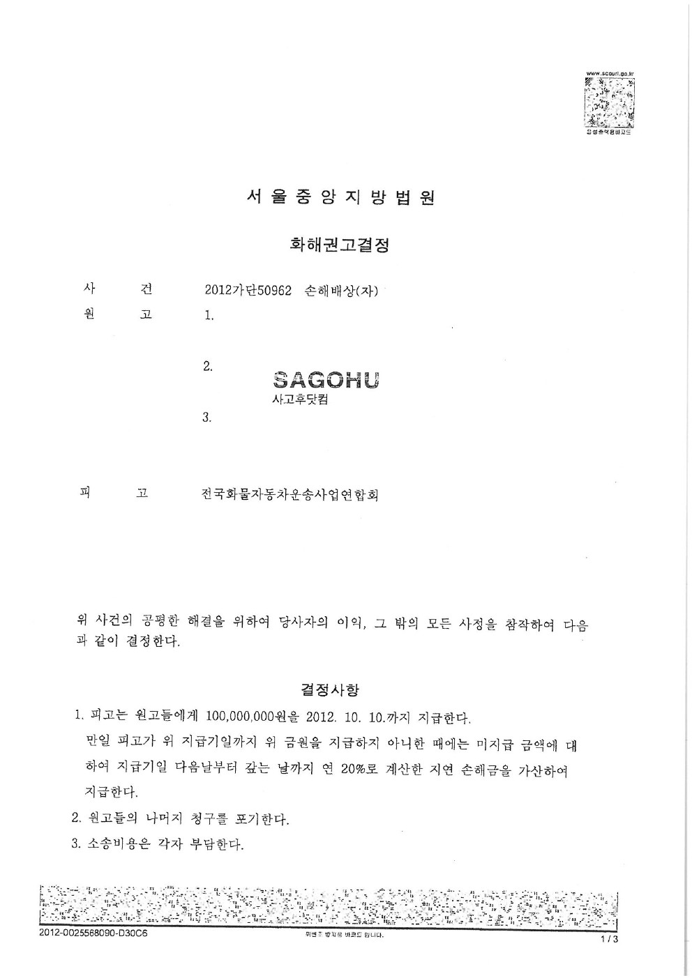 2012년 09월 13일 [서울중앙지방법원 1심 화해권고결정문]