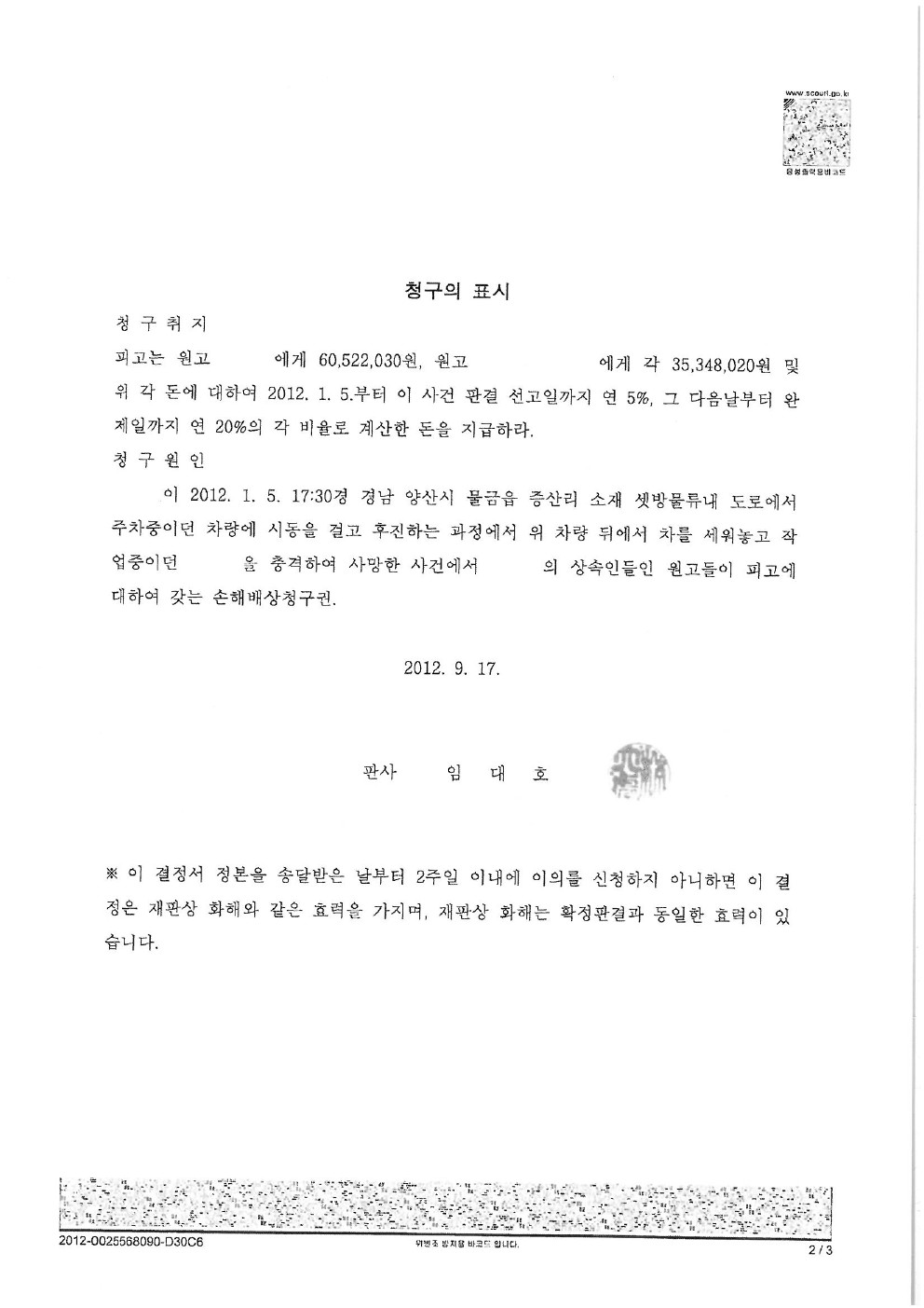 2012년 09월 17일 [서울중앙지방법원 1심 화해권고결정문]