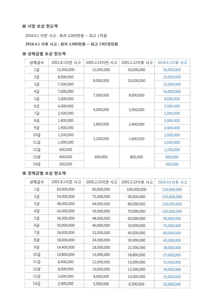 » 2016년 책임보험 보상한도 증액(2016.4.1 이후 사고) file 사고후닷컴 2016.06.10 4088