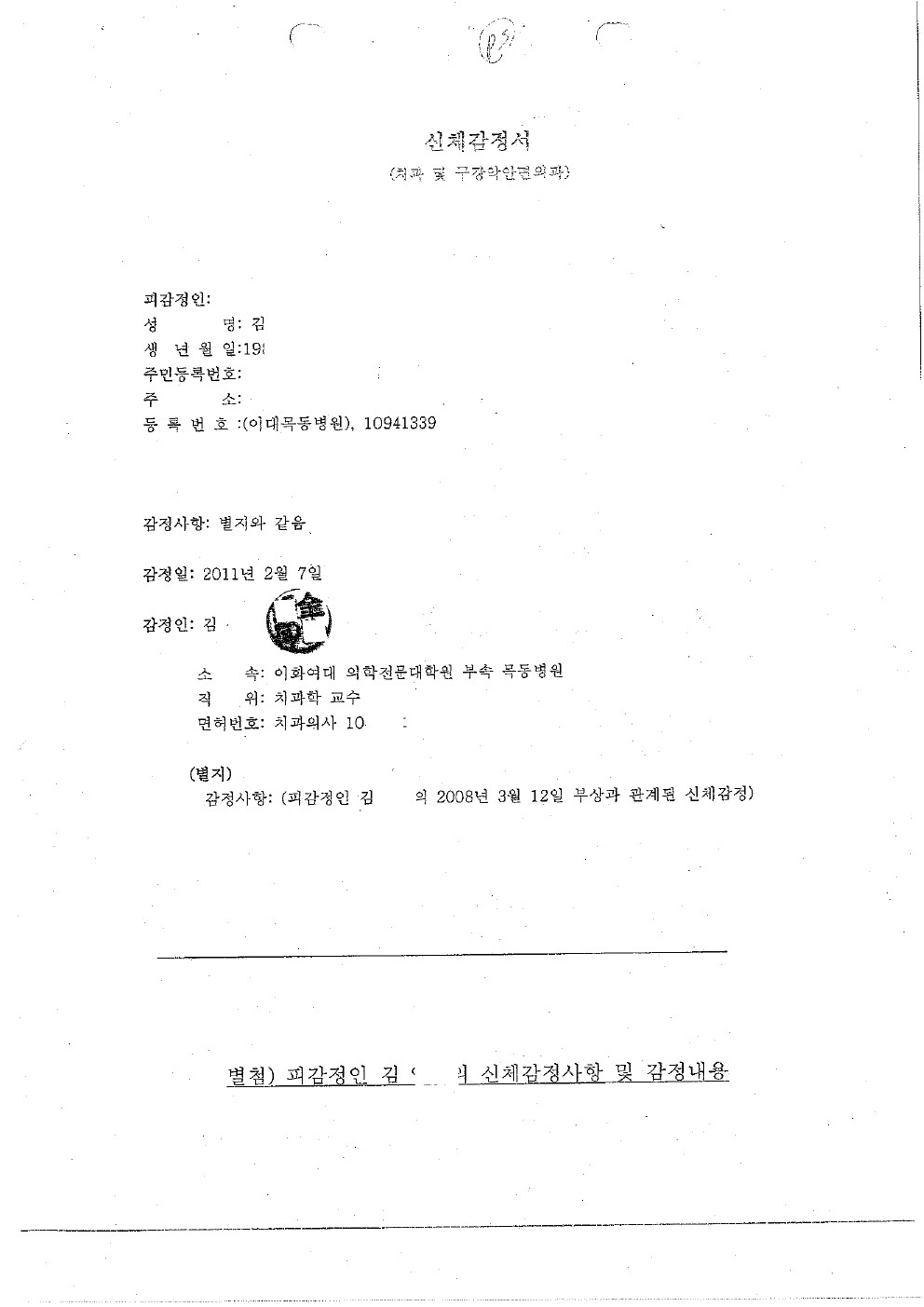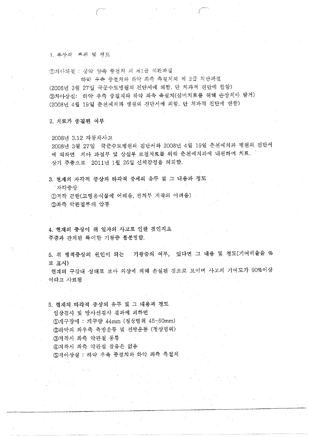 이화여대 목동병원(후유장해-저작기능 장해)