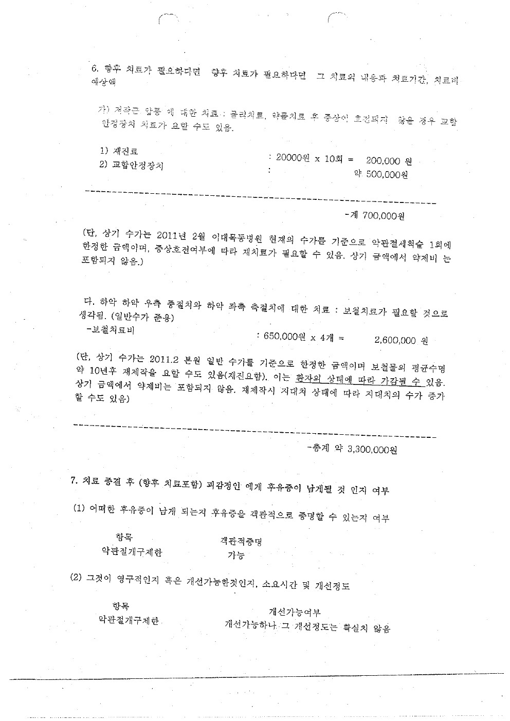 중앙대학교병원(후유장해-보철 7개 이상)