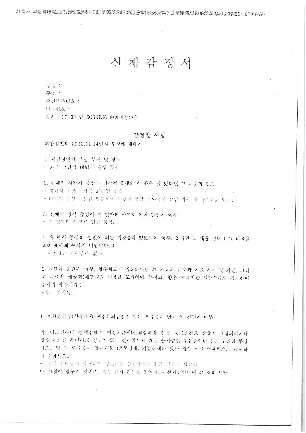 순천향대병원 [후유장해-전방 십자인대 파열, 양측 회전근개 파열]