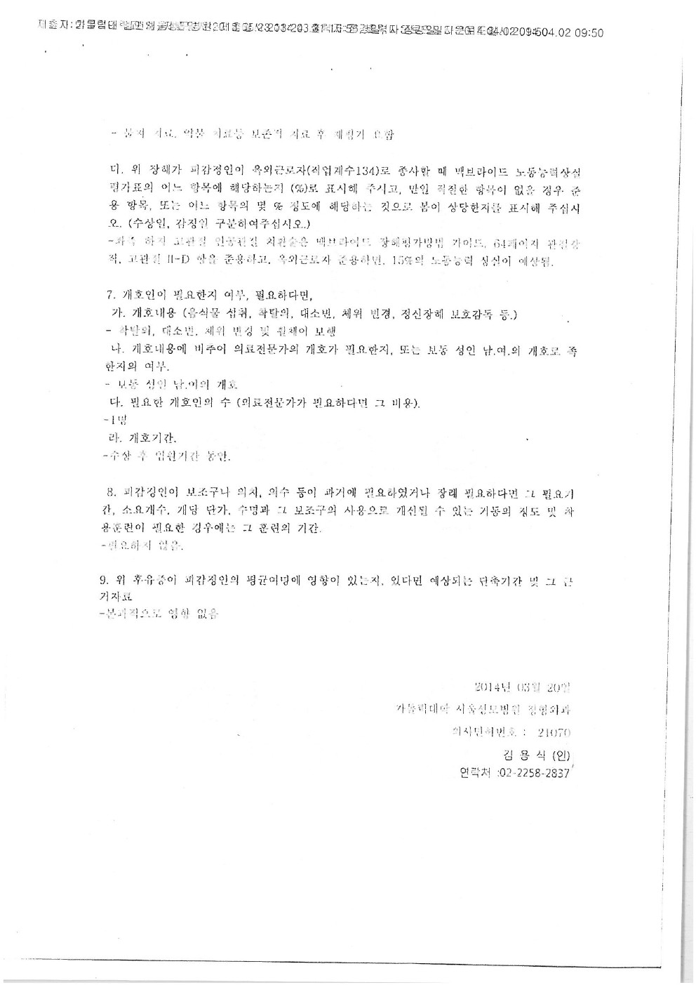 카톨릭대 서울성모병원 [후유장해-족지 절단 및 강직]