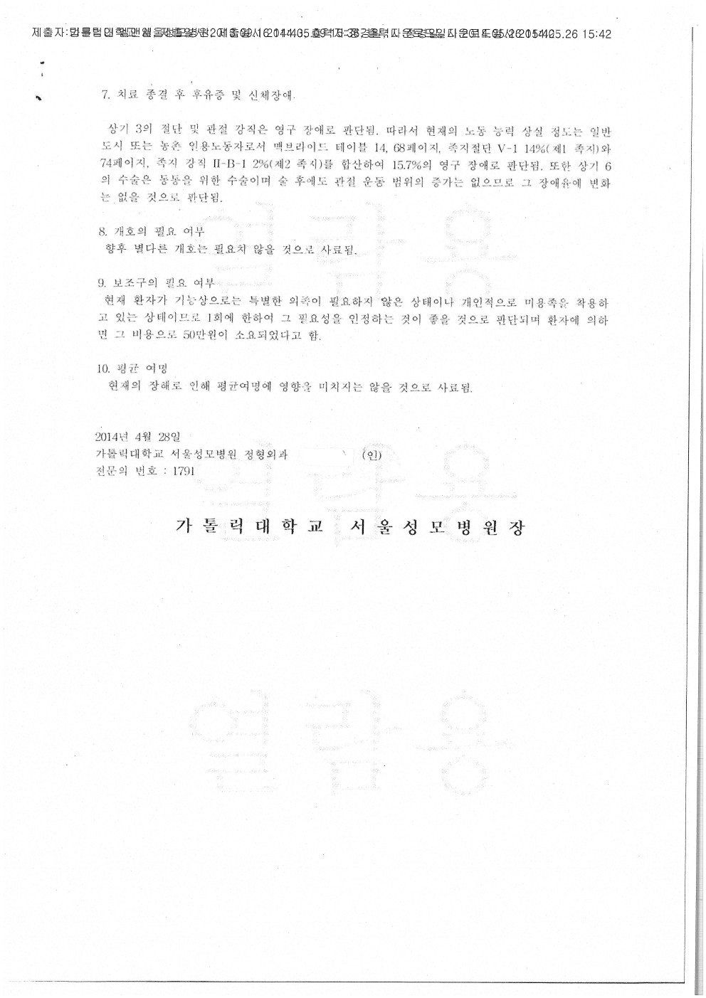 서울성모병원 [후유장해-대퇴부 인공관절 치환술]