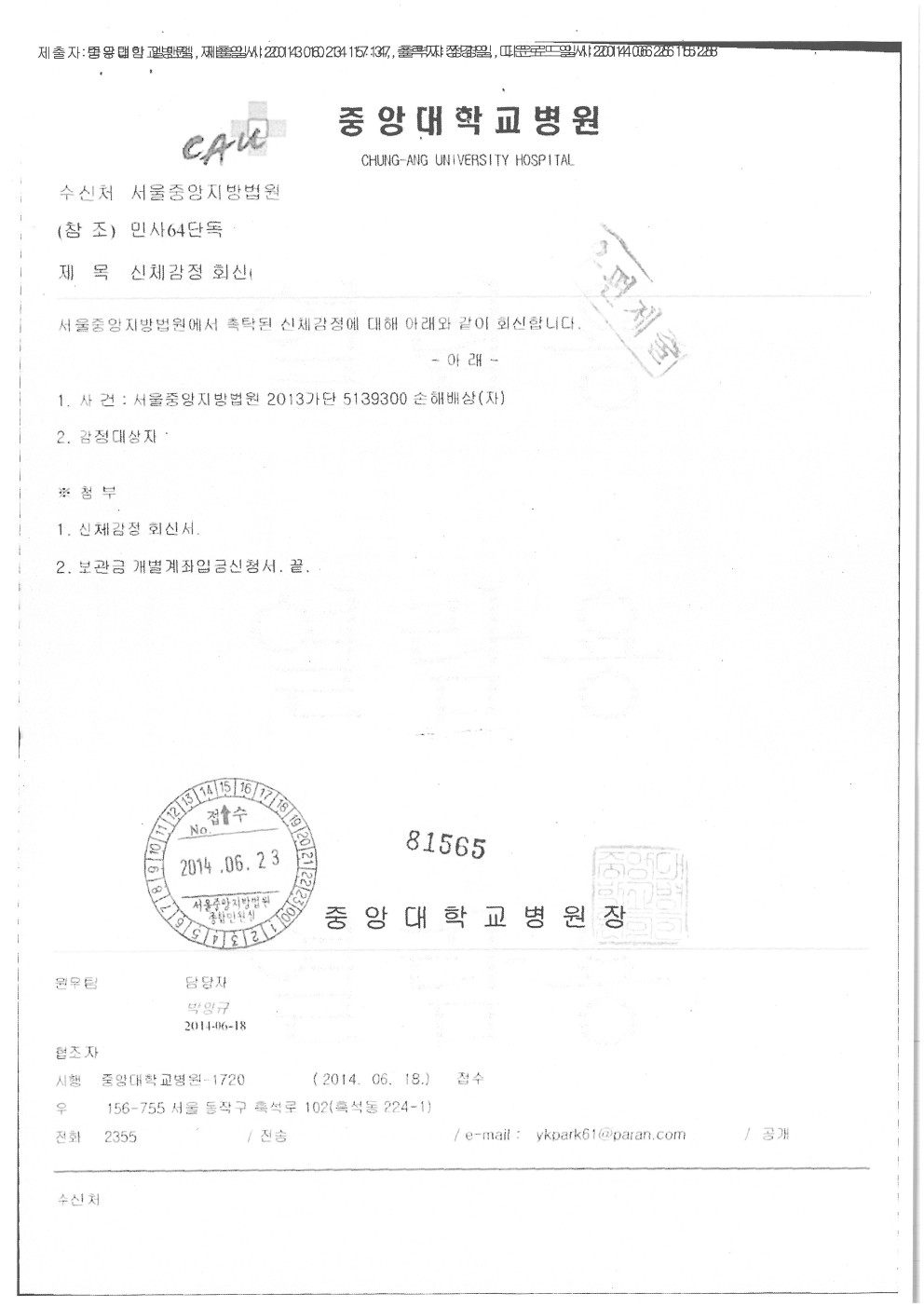 중앙대병원 [후유장해-악악면 말초신경 손상]