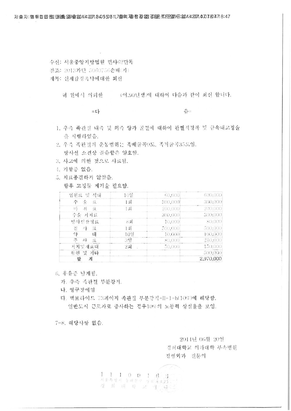 서울성모병원 [후유장해-대퇴부 인공관절 치환술]