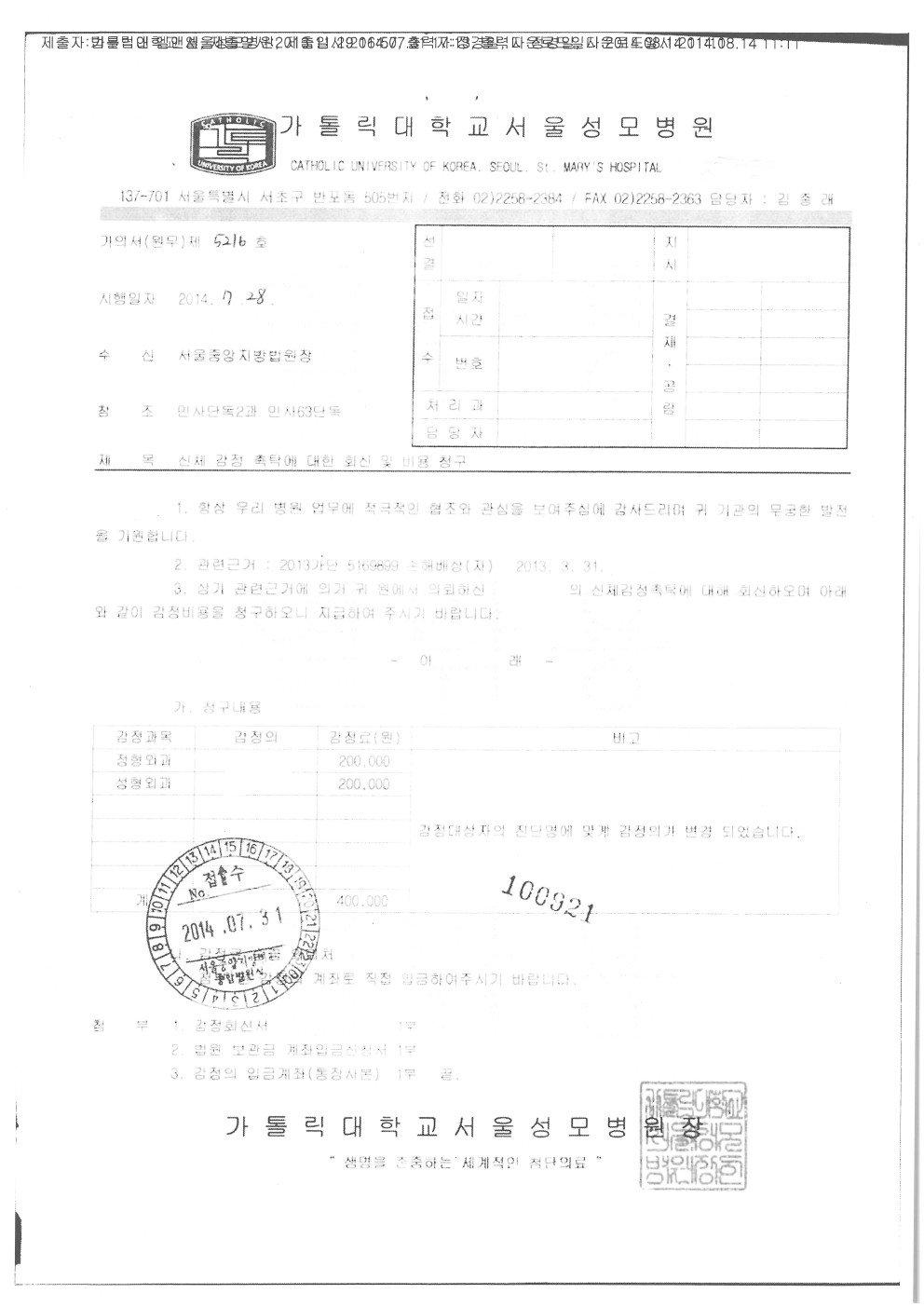 카톨릭대 서울성모병원 [후유장해-족지 절단 및 강직]