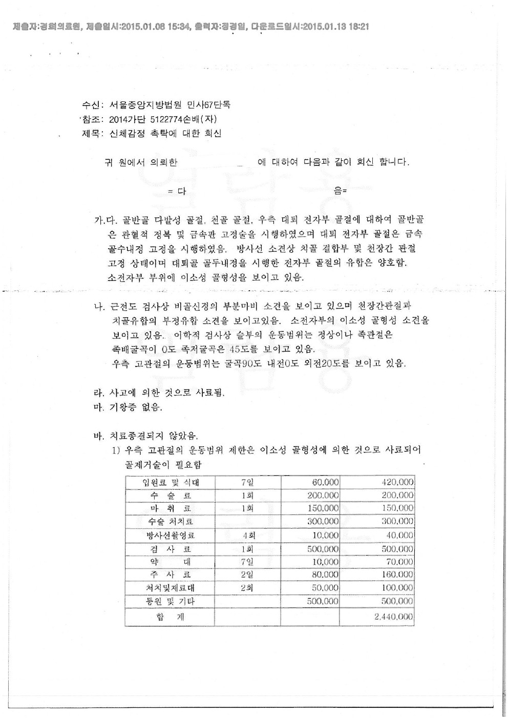 연세의료원 세브란스병원 [후유장해-후방십자인대 파열, 슬관절 강직]