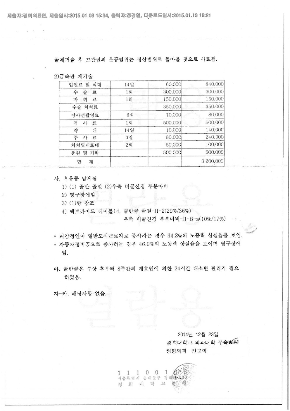 경희의료원 [후유장해-골반골절, 비골신경 부분마비]
