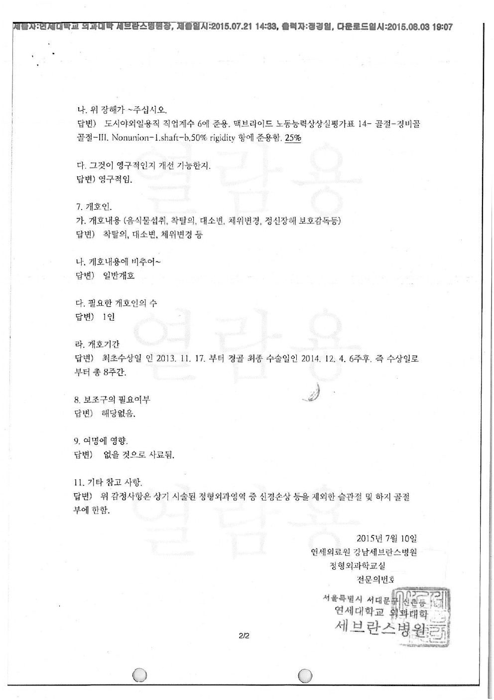 연세대 세브란스병원 [후유장해-경골 간부 불유합]