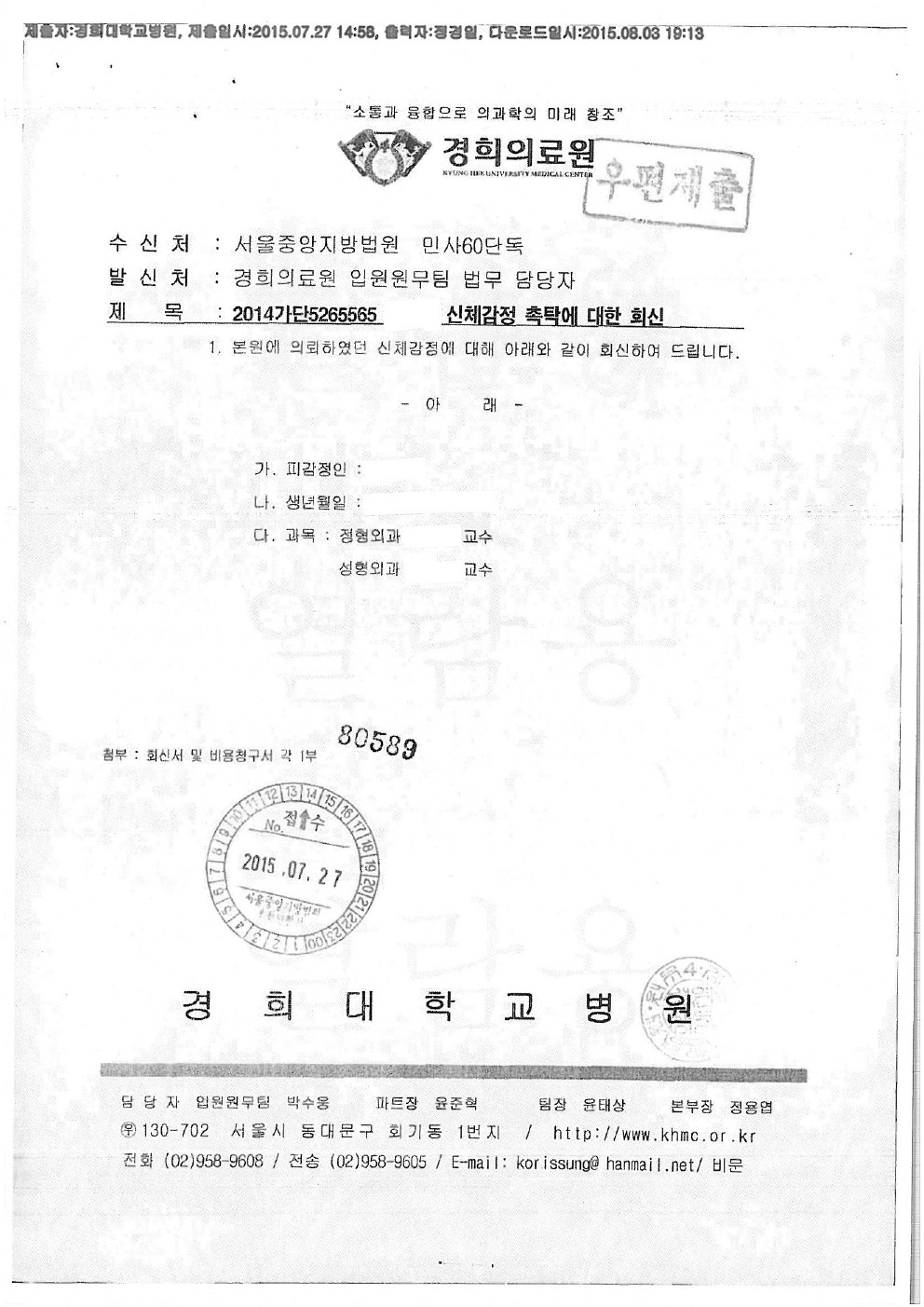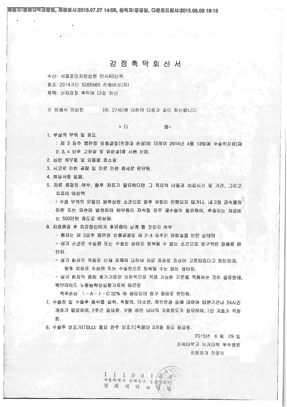 경희의료원 [후유장해- 제3요추 방출골절 고정술 및 후방 감압술]