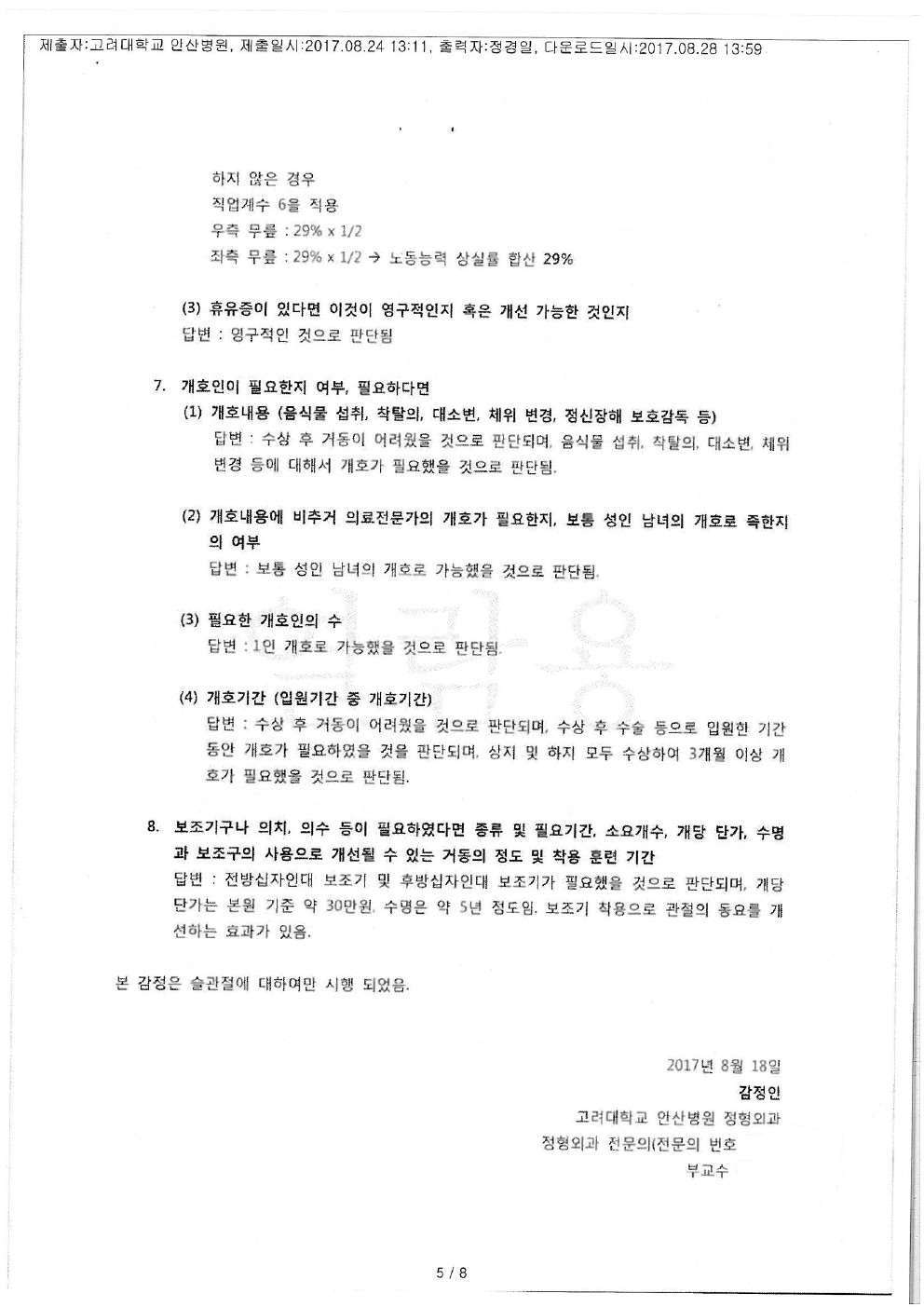 순천향대 서울병원[후유장해-대퇴골 골절에 의한 슬관절 부전 강직]