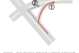 직진도로에서 갈라진 우회전 도로 지나쳐 교차로에서 우회전은 위법